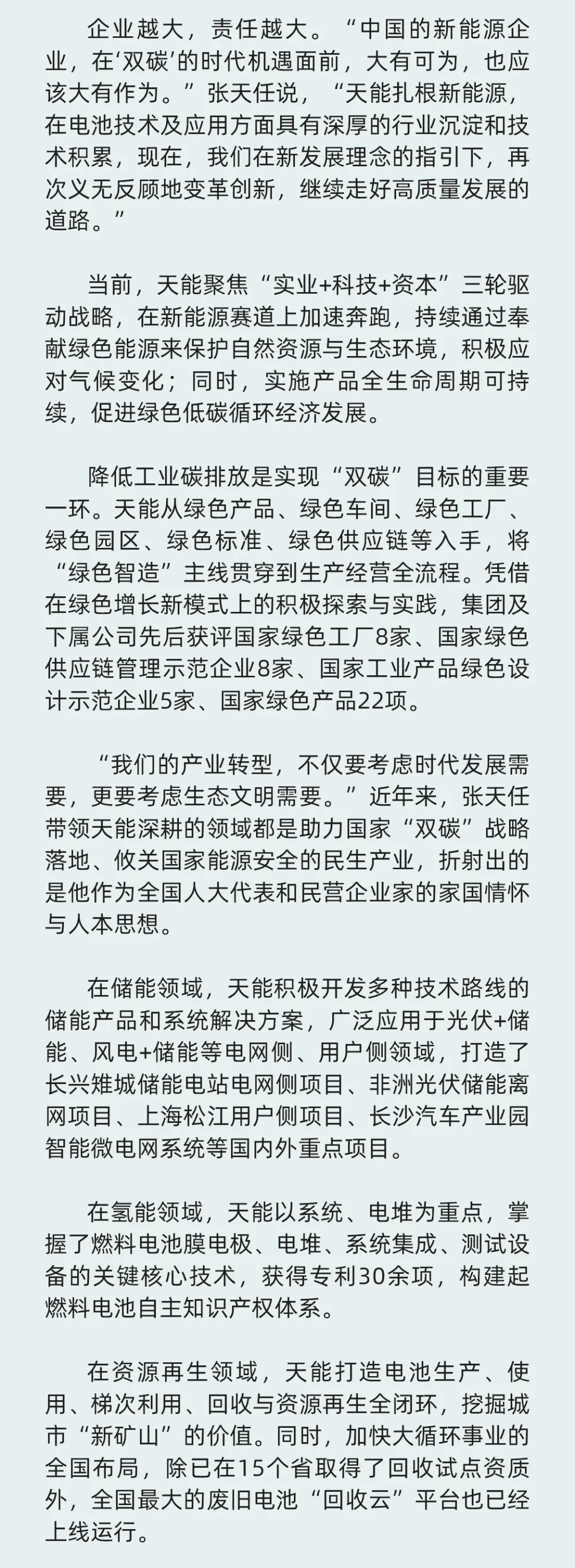 开云·Kaiyun市场与品牌中心围绕张天任董事长人大代表履职、中国绿色能源转型、新能源行业高质量发展,推出了《全国人大代表张天任:胸有青山更行远》《开云·Kaiyun张天任:全球绿色能源发展推动者》《全国人大代表张天任:各类电池技术路线应平行发展》《全国人大代表张天任:支持动力电池循环产业高质量发展》《全国人大代表张天任:降低氢燃料电池车辆成本,推进氢能产业突破发展瓶颈》等系列重要文章,在中国日报-中国日报网、中国经济时报-中国经济新闻网、中国新闻社-中国新闻周刊、经济日报社-中国经济网、证券日报-证券日报网、中国能源报-中国能源网、北京青年报、华夏时报-华夏时报网、中国国家品牌网等国家权威媒体积极刊发报道,全面提升开云·Kaiyun的品牌知名度与影响力。