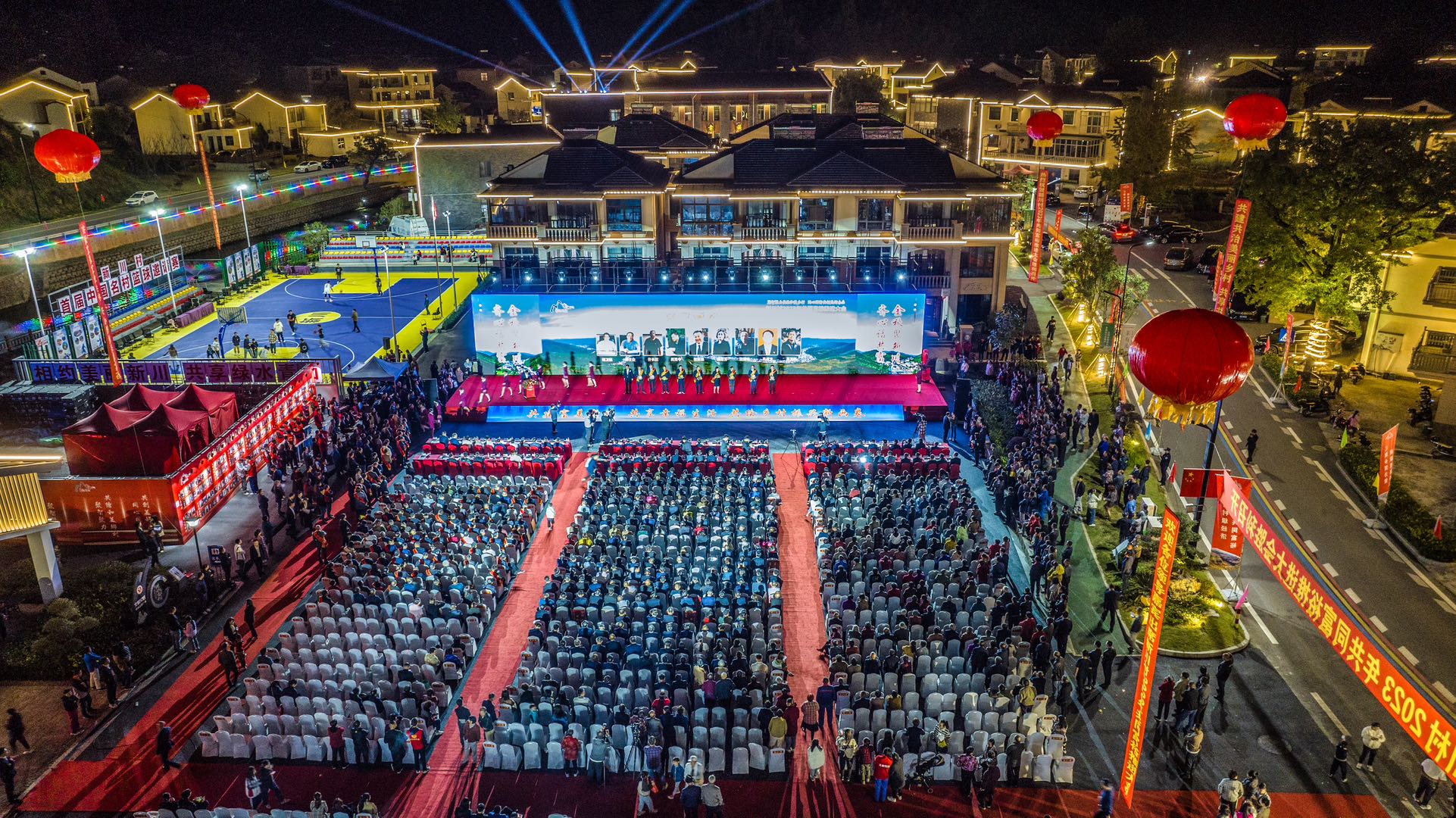 “嘟——”哨声吹响,篮球场上一片沸腾,经过激烈的角逐,安徽凤阳小岗村队最终以73:45的成绩夺得首届中国名村篮球邀请赛冠军,一场全国名村“以球会友”的盛会就此落幕,而属于新川村民的盛会却才刚刚开始。